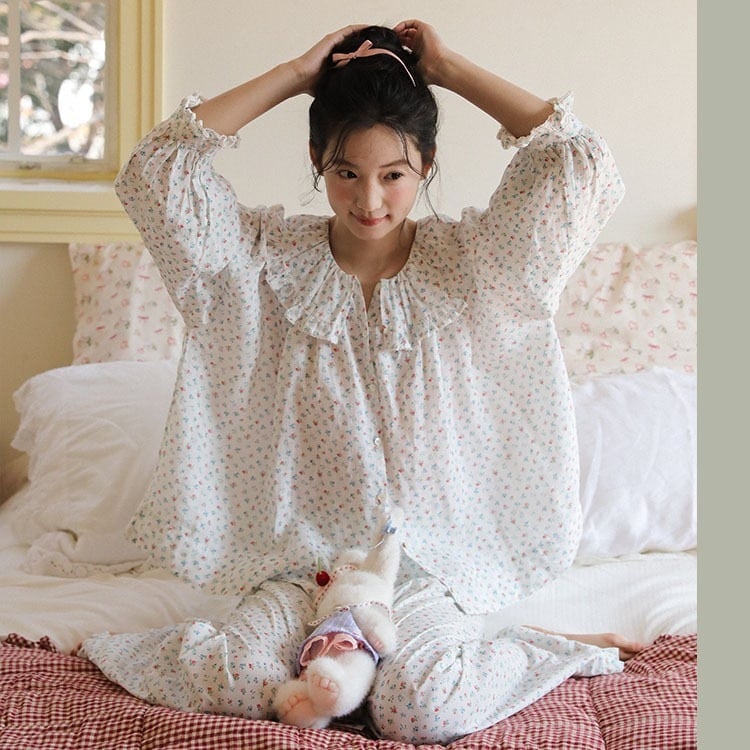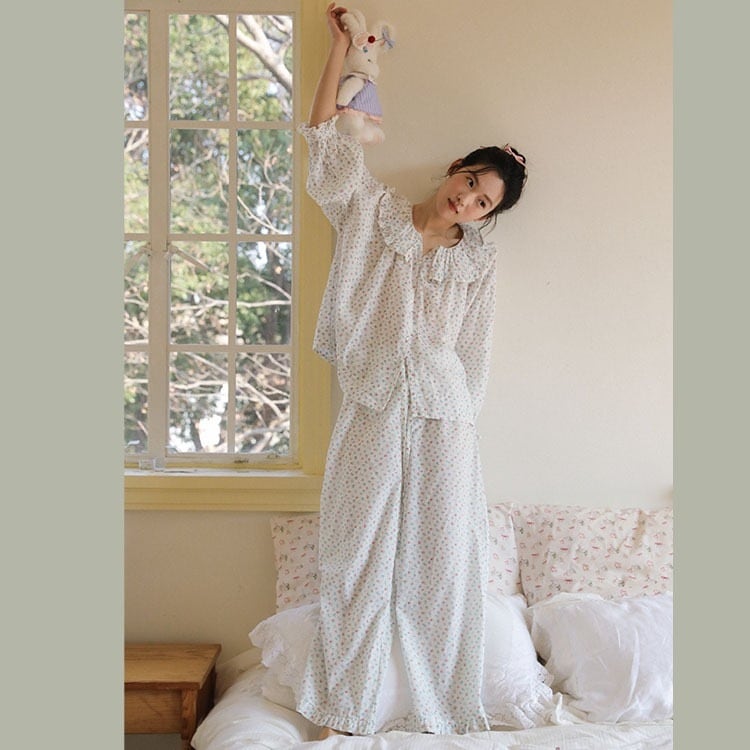 華やかなスプリングフラワー柄のルームウェア。